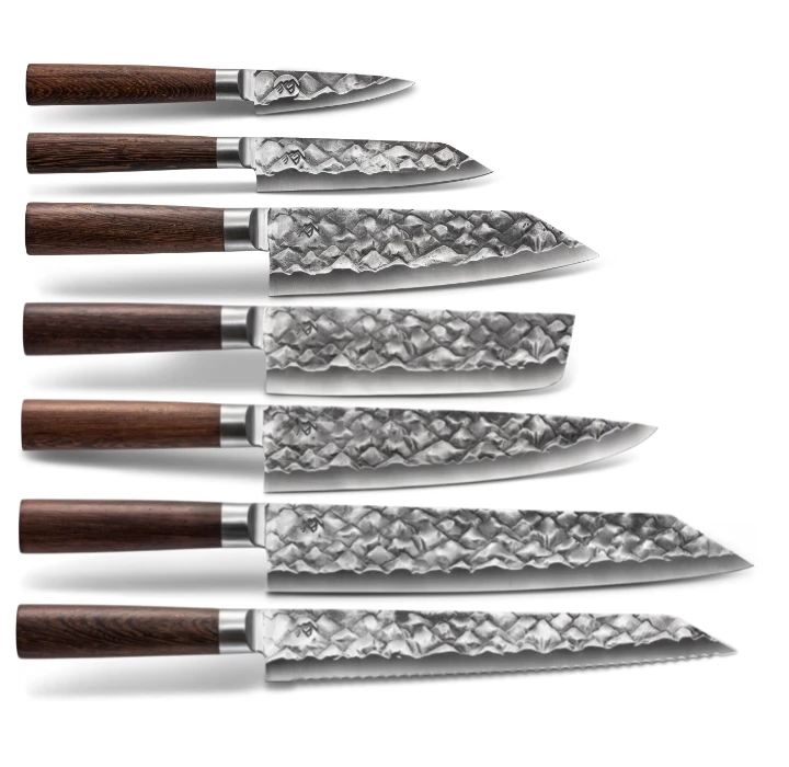 160mm Nakiri – De Nakiri is perfect voor het snijden van rechte plakjes of julienne. Een vlak snijprofiel en afgeronde punt. Binnen enkele seconden reduceer je stapels groenten tot plakjes, blokjes of reepjes. We zijn verliefd geworden op de Nakiri en jij ook nadat je hem hebt gebruikt. Het is het perfecte groentemes.