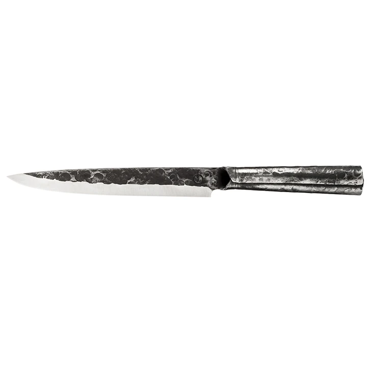 Het merk Forged staat voor een bijzondere en opvallende koksmessencollectie. Door het bijzondere uiterlijk, de mooie verpakking en het volledige handwerk zal dit menig messenliefhebber zijn hart sneller doen laten kloppen. 100% handgesmeed, verpakt in bijzonder gebrand houten kistje. Ieder mes is een UNIEK stuk! Verpakt in een luxe houten kist. NIET vaatwasmachinebestendig. Direct na het afwassen drogen met een doek. De Brute Forged messen collectie is verkrijgbaar als losse messen of als 3-delige messenset. De collectie bestaat uit een: Koksmes, Universeel mes, Hakbijl, Broodmes, Vleesmes, Schilmes.