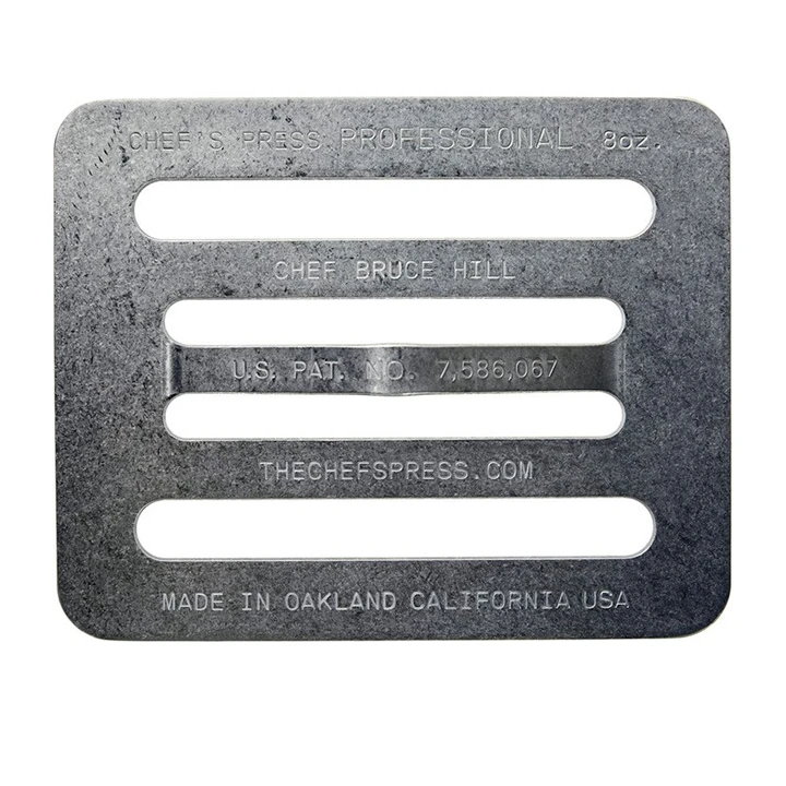 Gebruik Chef’s Press op steaks, bacon, burgers, sandwiches en nog veel meer tijdens het grillen, om een gelijkmatige garing te krijgen!