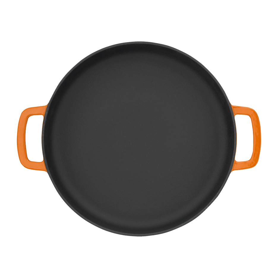 Deze Double Handle is gemaakt van fabrieksafval en is 100% gerecycled. Een perfecte allrounder. Het maakt niet uit of je voor inductie of bbq kiest. We kunnen elke warmtebron (dubbel) aan. De Cast Iron serie heeft een supersterke emaille coating en is te herkennen aan het iets subtielere design en de gedurfde en heldere drie kleuren: rood, oranje en zwart.