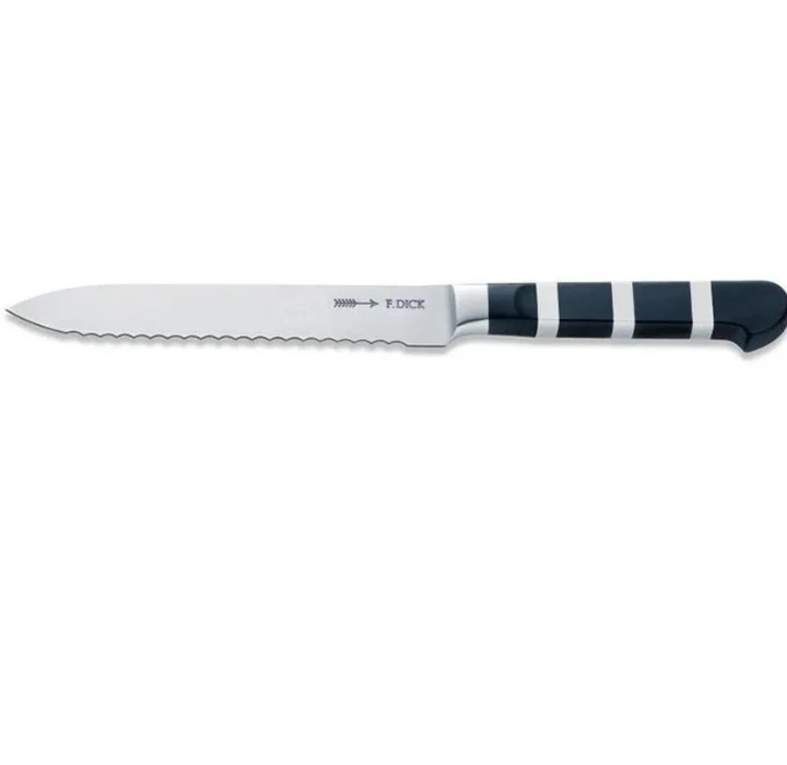 Een mix van traditie en modernisme met de nieuwe versie van het historische ontwerp. Friedr.Dick ontwikkelde een Chef’s Knife-serie met massieve bolsters in 1905, ter vervanging van de traditionele geklonken handgreep die tot nu toe was gebruikt. De gesmede serie blijft opvallen met zijn uitzonderlijke uiterlijk. Het blad is gemaakt van speciaal XCrMoV15 Duits roestvrij staal.