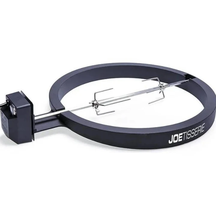 De Joe Tisserie, gemaakt van duurzaam gegoten aluminium, maakt van de Kamado Joe Classic een een complete draaispit oven. Het vlees draait rond binnen de hoogwaardig keramische wanden van de Kamado Joe, waardoor alle sappen bewaard blijven. Het vlees krijgt een heerlijke rooksmaak en blijft mals. De stille elektromotor is krachtig genoeg om het spit aan te drijven compleet met een kip, riblappen of varkensschouder tot een gewicht van 22,5 kg.