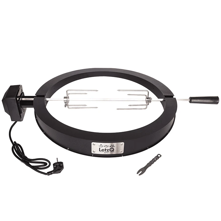 Het LetzQ spit met een RVS draai spit en elektrische motor van 4 watt, waar je bijvoorbeeld een heerlijk kippetje mee kan grillen. Normaal is een kip op de kamado al een heel fijn gerecht maar van het spit komt die nog sappiger van de kamado.