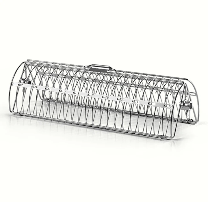 Dit rvs-draaispitrek is duurzaam en eenvoudig schoon te maken. Het unieke dubbele ontwerp heeft een grotere capaciteit om delicate etenswaren op zân plaats te houden. Voor het gelijkmatig braden van hele vis, spareribs, kip, lamskoteletten en nog veel meer. Deze accessoire past op de meeste draaispitstangen.