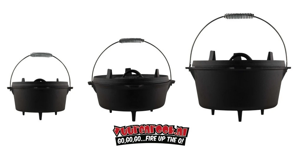 De Dutch oven is voorzien van details waardoor je hem gemakkelijk kunt gebruiken. De Dutch oven kan veilig worden opgetild dankzij een stevige handgreep. Drie poten geven stabiliteit aan de Dutch Oven en een thermometer gat maakt het mogelijk om de temperatuur te controleren zonder het deksel op te hoeven tillen. Een ander bijzonder kenmerk is dat het omgekeerde deksel ook als pan kan worden gebruikt.