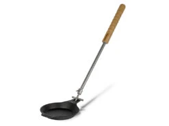 De koekenpan voor het kampvuur: dankzij de afneembare telescopische handgreep kun je de gietijzeren koekenpan veilig op het vuur plaatsen. Verstelbare lengte: gebruik de vleugelschroef om de telescopische handgreep aan te passen aan je individueel gewenste lengte. Duurzaam materiaal: dankzij het natuurlijke antiaanbakeffect en de optimale warmteverdeling kun je steaks, worsten, enz. bakken in de robuuste gietijzeren braadpan, die meteen klaar is voor gebruik. Kampvuurgerechten rechtstreeks uit de braadpan: dankzij het telescopische handvat kun je de braadpan altijd recht houden en handig gebruiken om te serveren.