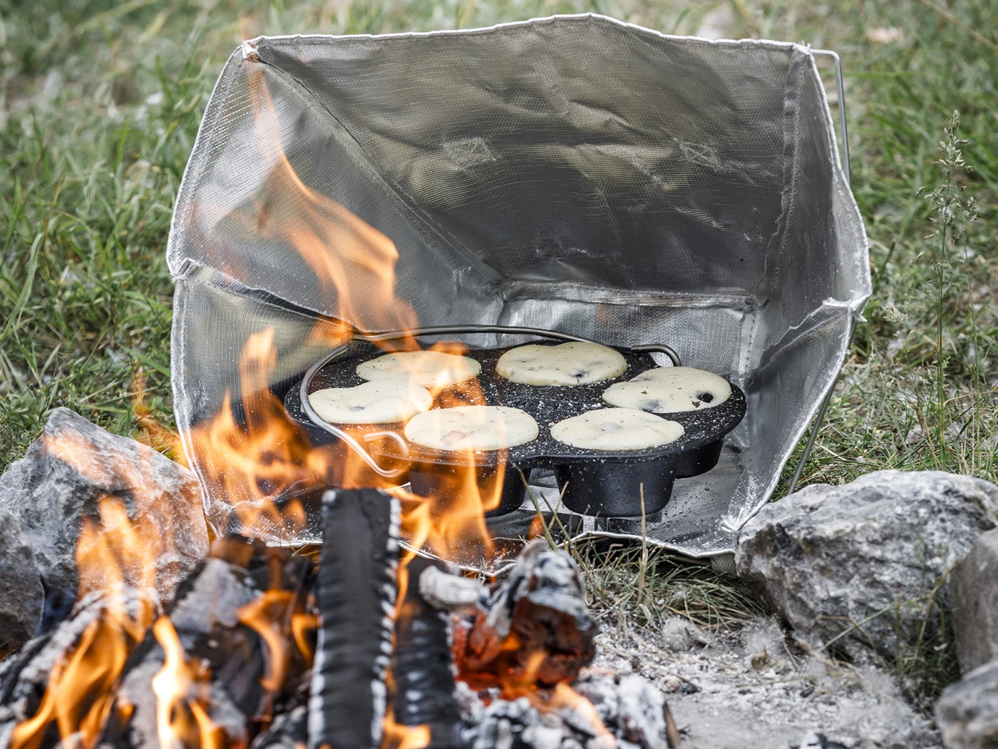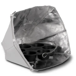 In de opvouwbare reflectoroven kun je dankzij indirecte warmte en intelligente reflectie van de warmte brood, koekjes, cake, maar ook vis, vlees en gevogelte bereiden. Tegelijkertijd bereid je andere gerechten boven en in het vuur, bijvoorbeeld in de Dutch Oven.Â