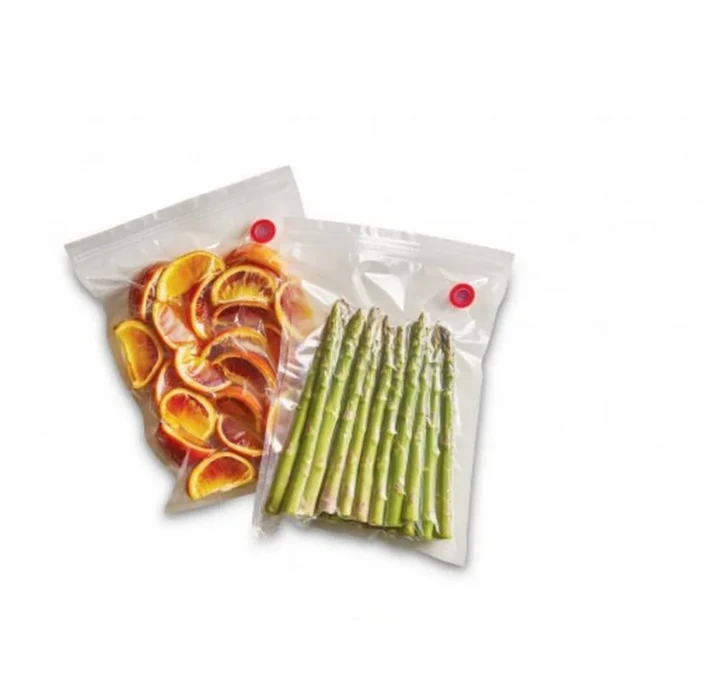 In de plastic SOLIS Zip Vacuum Bags blijft de kwaliteit van zowel bereide als onbereide voedingsproducten maximaal behouden. Aangezien de inhoud van deze zakken luchtdicht en droog verpakt is, is deze oplossing tevens aantrekkelijk voor kostbare eigendommen tijdens het kanoën of kamperen. Je gebruikt de zakken in combinatie met een vacumeermachine, zoals bijvoorbeeld de SOLIS Vac Prestige of de SOLIS Sous-Vide Cooker Pro. De drie-laags SOLIS Zip Vacuum Bags zijn zowel diepvries- als magnetronbestendig en 100% BPA vrij.