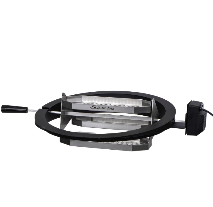 The Spit on Fire is een rotisserie met een RVS draai spit en elektrische motor. Waar je een o.a. een heerlijk kippetje op kan grillen. Het unieke van The Spit on Fire is dat het jou de mogelijkheden geeft om jouw keramische BBQ als een grill te gebruiken. Dit terwijl de isolerende eigenschappen van de keramische BBQ behouden blijven! Het geheim dat het gebruik van een spit in een keramische BBQ mogelijk maakt is de vorm. Deze is namelijk dikker van voor en wordt dunner aan de achterkant van de BBQ. Dat zorgt ervoor dat het deksel van de keramisch BBQ toch gesloten kan worden met het spit er in.Â